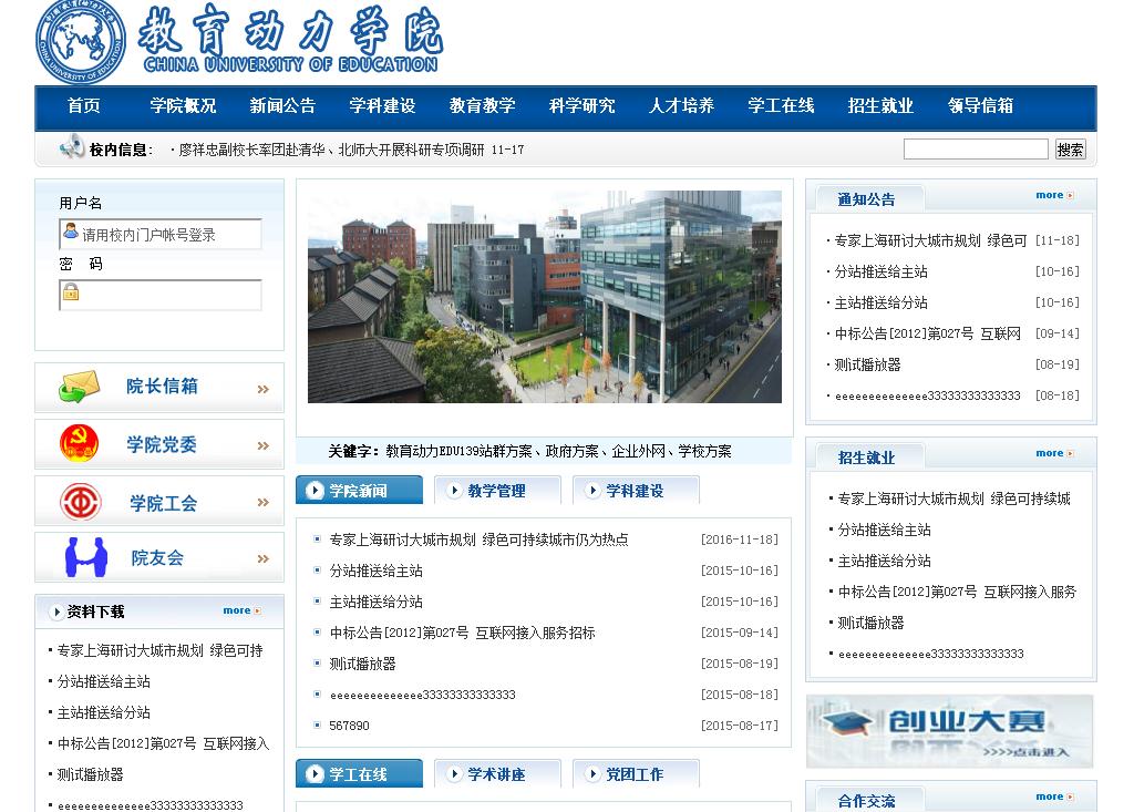 教育动力EDU139制作学校学院单位网站统一采用的公司网站模板来制作的,为全国中小学校学院单位网站建设公司提供营销网站建设,成为营销型学校学院单位网站建设专家,致力打造中国一流的网站建设平台。